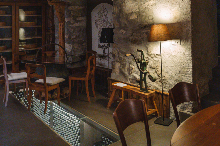 A veritable institution in any self-respecting Vaudois home, the carnotzet occupies a central place on our estate. Its metre-thick stone walls date back to the 1780s, when this space was still just a barn. At the end of the 19th century, the barn was converted into a dwelling and once housed a treadmill press, which no longer exists today. It is in this welcoming setting that the Jomini family opens its doors to you for unique tasting experiences, combining pleasure, conviviality and discovery.
